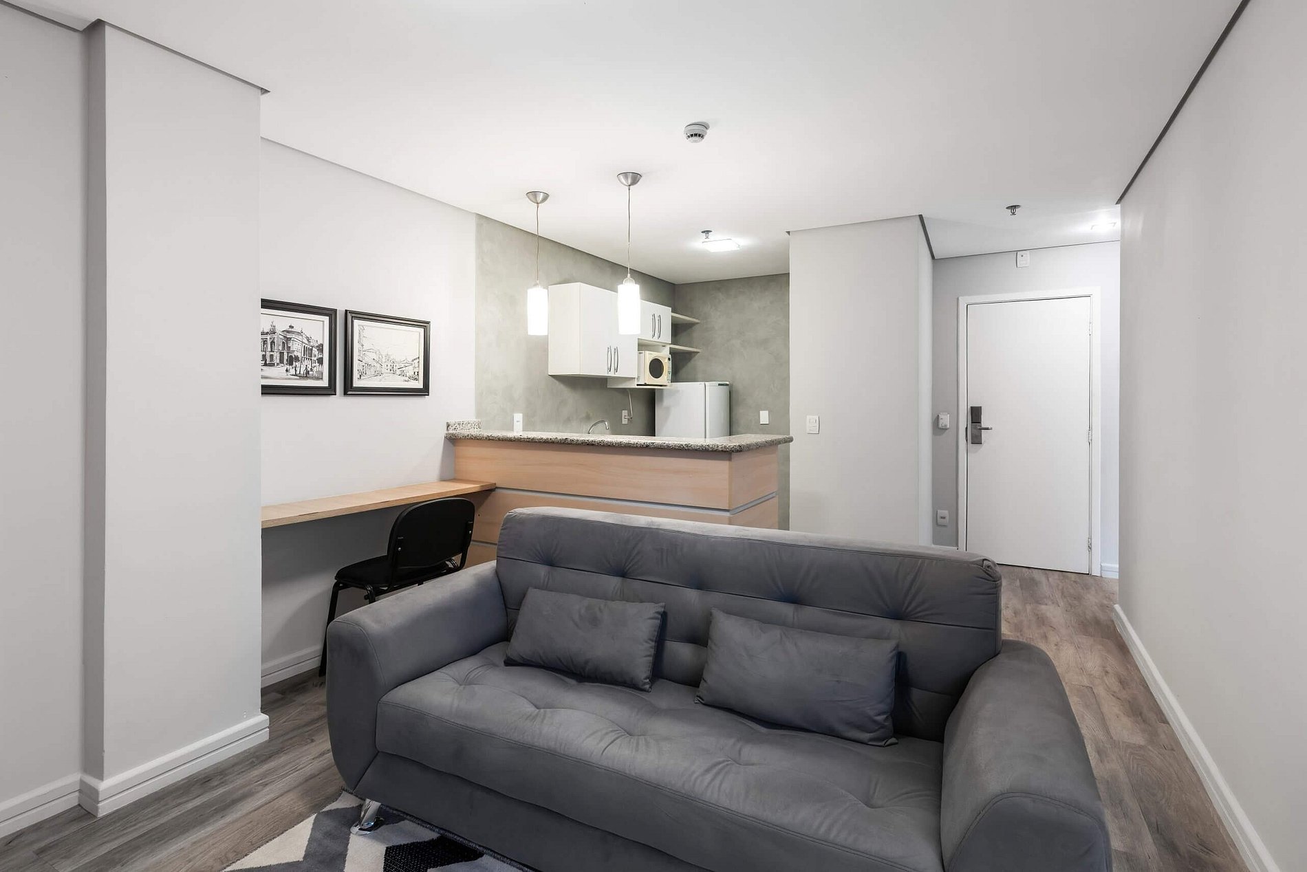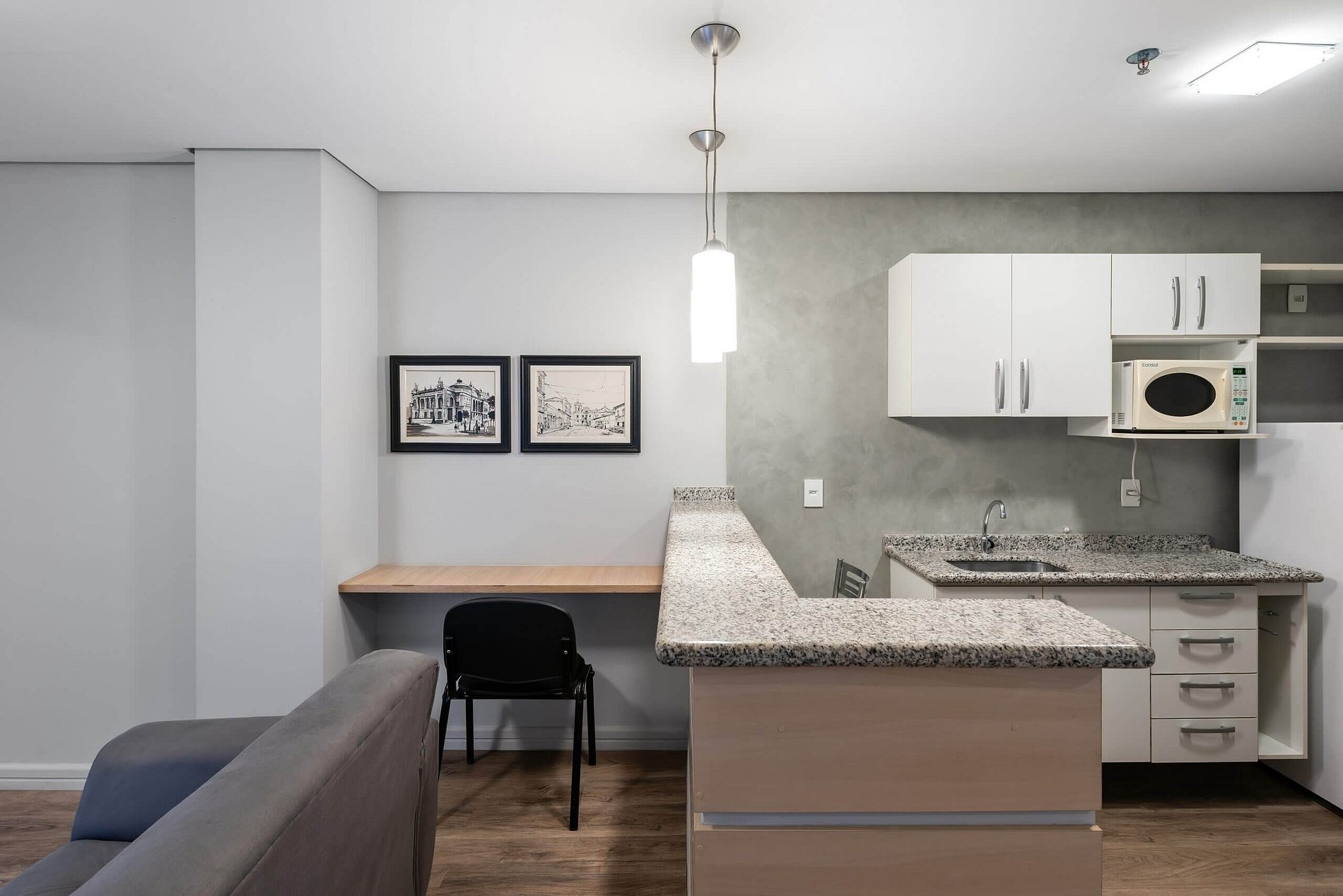 Área de estar com sofá/cadeira